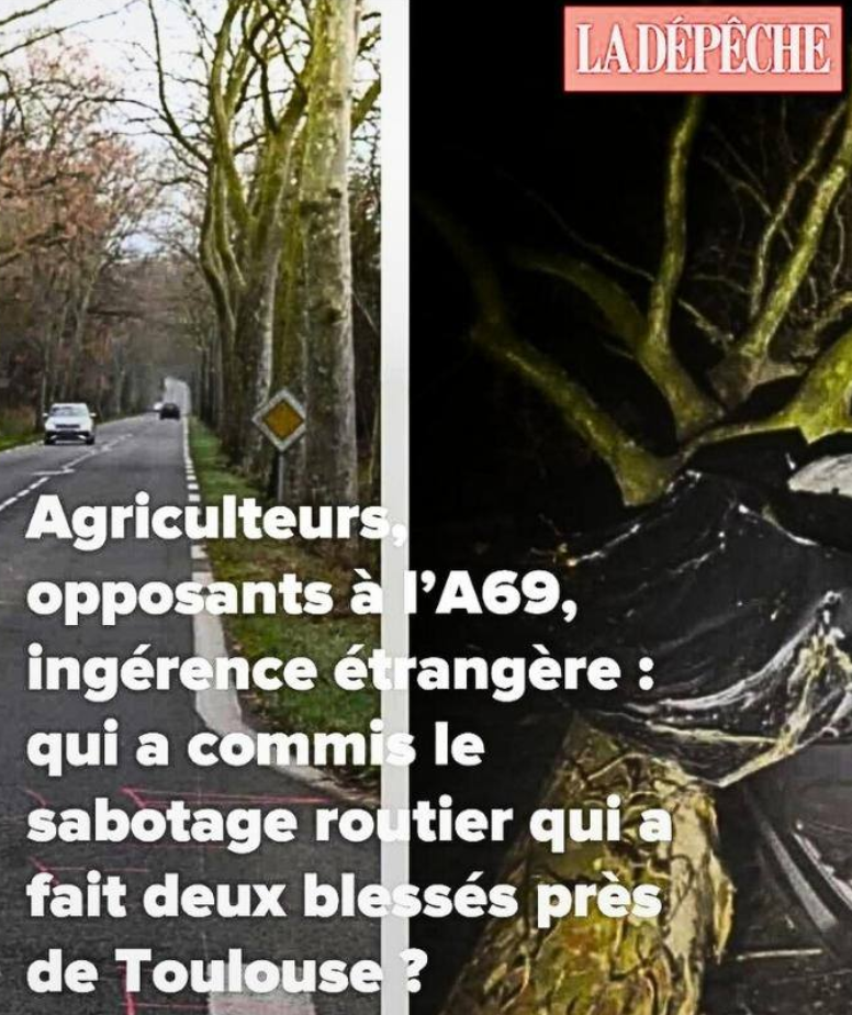 Par son titre « Agriculteurs, opposants à l’A69, ingérence étrangère : qui a commis le sabotage routier qui a fait deux blessés près de Toulouse ? », l’article publié le 16 janvier par laisse en effet planer le doute : sans accuser directement le collectif La Voix Est Libre, qui fédère l’opposition à l’A69, il insinue qu’il pourrait être à l’origine de ce type d’action.