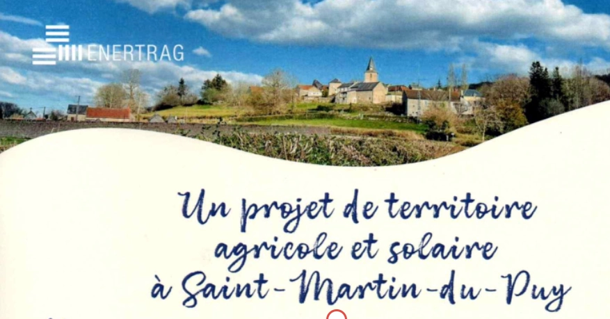 C’est par une brochure à l’en-tête bucolique et à la police d’écriture désuète, sans doute censée faire plus « proche des campagnards », que les habitants de Saint-Martin-du-puy ont été informé du projet. La société Enertag y promouvait les bienfaits agricoles, énergétiques et financiers de la centrale qu’elle projetait de construire au lieu-dit du « Fourlot ».