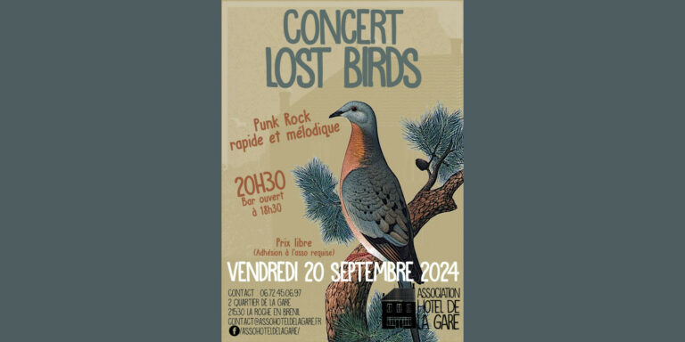 Un concert du groupe Lost Birds, du punk rock rapide et mélodique, proposé par l’association Hôtel de la Gare. Prix libre (adhésion à l’association requise) Le bar est ouvert à partir de 18h30. Le programme septembre, octobre, novembre de l’association :